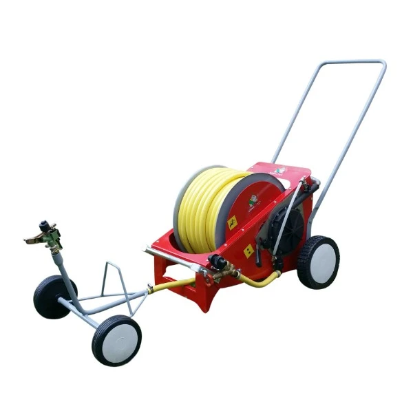 De slang heeft een lengte van 40 meter en diameter van 20 mm. De slang wordt automatisch opgerold door de turbinemotor. De turbine zorgt ervoor dat er minimaal drukverlies is voor de motor en er dus meer druk over blijft voor de sproeier en er een groter oppervlak beregend wordt. De snelheid waarmee dit gebeurt is instelbaar en dus aan te passen aan uw voorkeur.