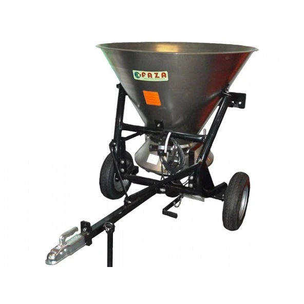 Getrokken zout-, mest- en zandstrooier voor tractor, quad of terreinwagen.