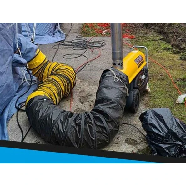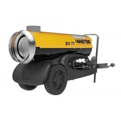 Verwarmer/warmeluchtblazer BV77E op diesel van Master blaast zuivere hete lucht en heeft een aparte rookgasafvoer: