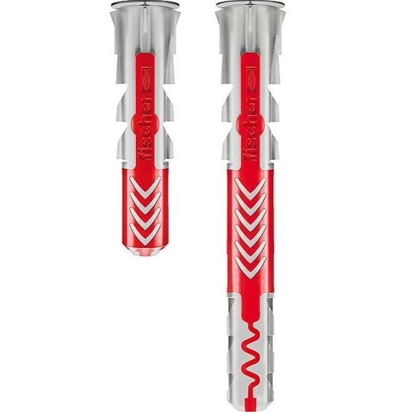 - De fischer DUOPOWER heeft een zeer hoge belastingswaarde door de 2 componenten: Het ‘zachte’ rode deel van de plug is verantwoordelijk voor een veilige grip in volle materialen. Het ‘harde’ grijze deel vormt de basis voor de vouwfunctie in holle ruimtes.