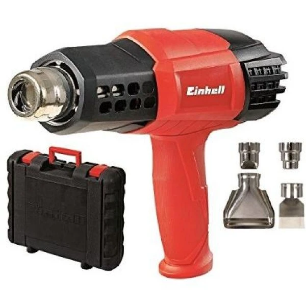 Groot instelwiel voor temperatuurregeling in 9 standen. Schakelaar voor het instellen van de luchtdoorvoer (3 standen) . Koelingsfunctie om snel van mondstuk te wisselen. Stabiele basis, ook geschikt voor stationaire toepassingen. Inclusief reduceer-, reflector-, sproeimondstuk, brede straalpijp